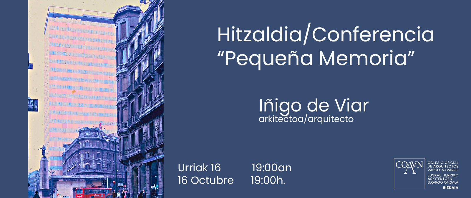 Más informaciónACTIVIDADES SEMANA DE LA ARQUITECTURA CONFERENCIA "PEQUEÑA MEMORIA" a cargo de IÑIGO DE VIAR Se trata de una introducción sobre la memoria y el patrimonio, desde lo que llamo “pequeña memoria”. Tanto como debemos conservar los edificios debemos conservar el carácter de la ciudad, y el carácter lo da el conjunto, los materiales, las formas o las tipologías que la ...