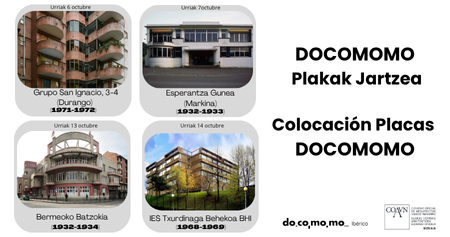 Más informaciónCOLOCACIÓN DE PLACAS DOCOMOMO 2025 EN LA SEMANA DE LA ARQUITECTURA Como viene sucediendo desde 2012, un año más la Delegación en Bizkaia del COAVN ha seleccionado entre los edificios que figuran en los Registros del Docomomo Ibérico (Industrial, Viviendas y Equipamientos) una serie de proyectos para la colocación de las placas otorgadas por la Fundación Docomomo (Fundación para la Conservación ...
